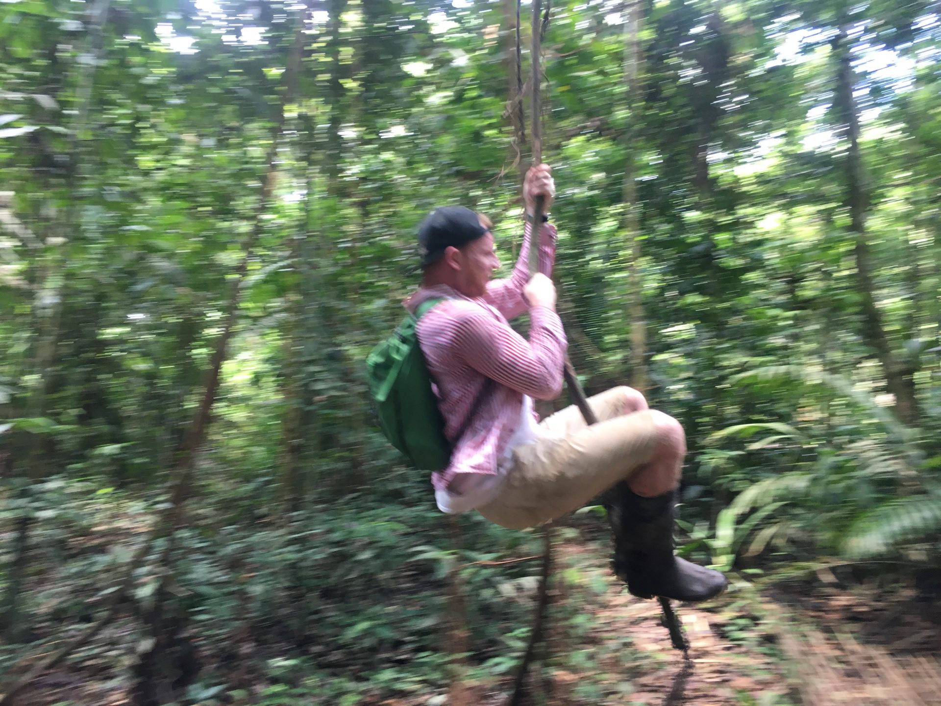 Ook zagen we nog een luiaard in een boom hangen. De hoogtepunt was misschien wel de twee slangen die we zagen. Eén daarvan was volgens de gids heel giftig, de andere was een wurgslang: Boa Constrictor. De rest van de dag was daarentegen ook leuk. Als een tarzan nog aan een liaan gehangen. En de gids kapte een tak door de midden en daaruit kwam echt ontzettend veel drinkbaar water. Dat was wel interessant om te zien.