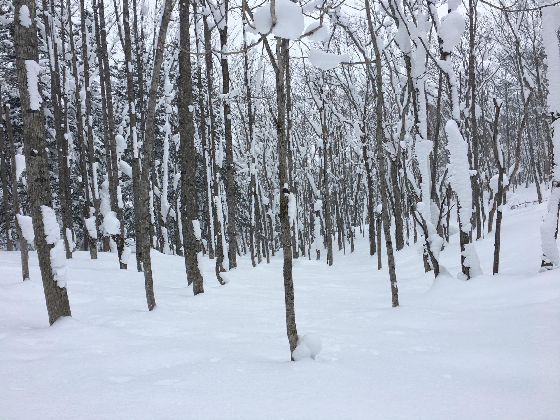 Uiteindelijk de eerste dag wat zogenaamde ‘tree runs’ gedaan. Slalommen tussen de bomen. En dit deed ik tussen twee pistes door. Wat in de ochtend nog prima ging, maar in de middag waren daar natuurlijk al veel sporen gezet. De middag zag ik een aantal snowboarden een stuk lopen buiten de pistes. Deze plekken worden door Niseko aangewezen als backcountry gebieden. Hier mag je, als een zendertje meeneemt, snowboarden. Dit zijn dan de niet geprepareerde delen van de berg.